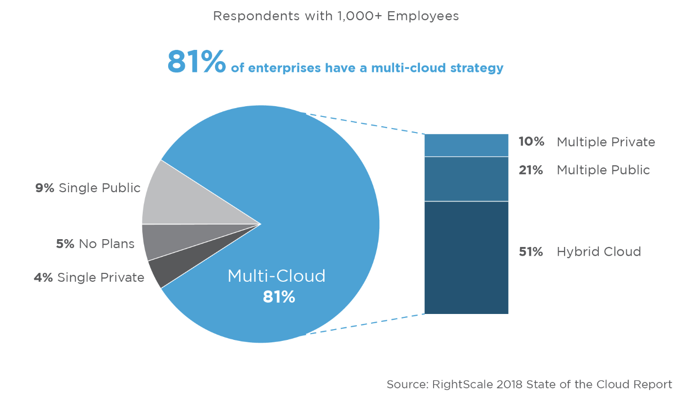 A survey of over 1000 people, about 47% of which employed within small or medium-sized businesses, reported an overarching adaptation of Hybrid cloud utilization within a multi-cloud infrastructure – a function of adding private cloud resources to their current cloud strategy: